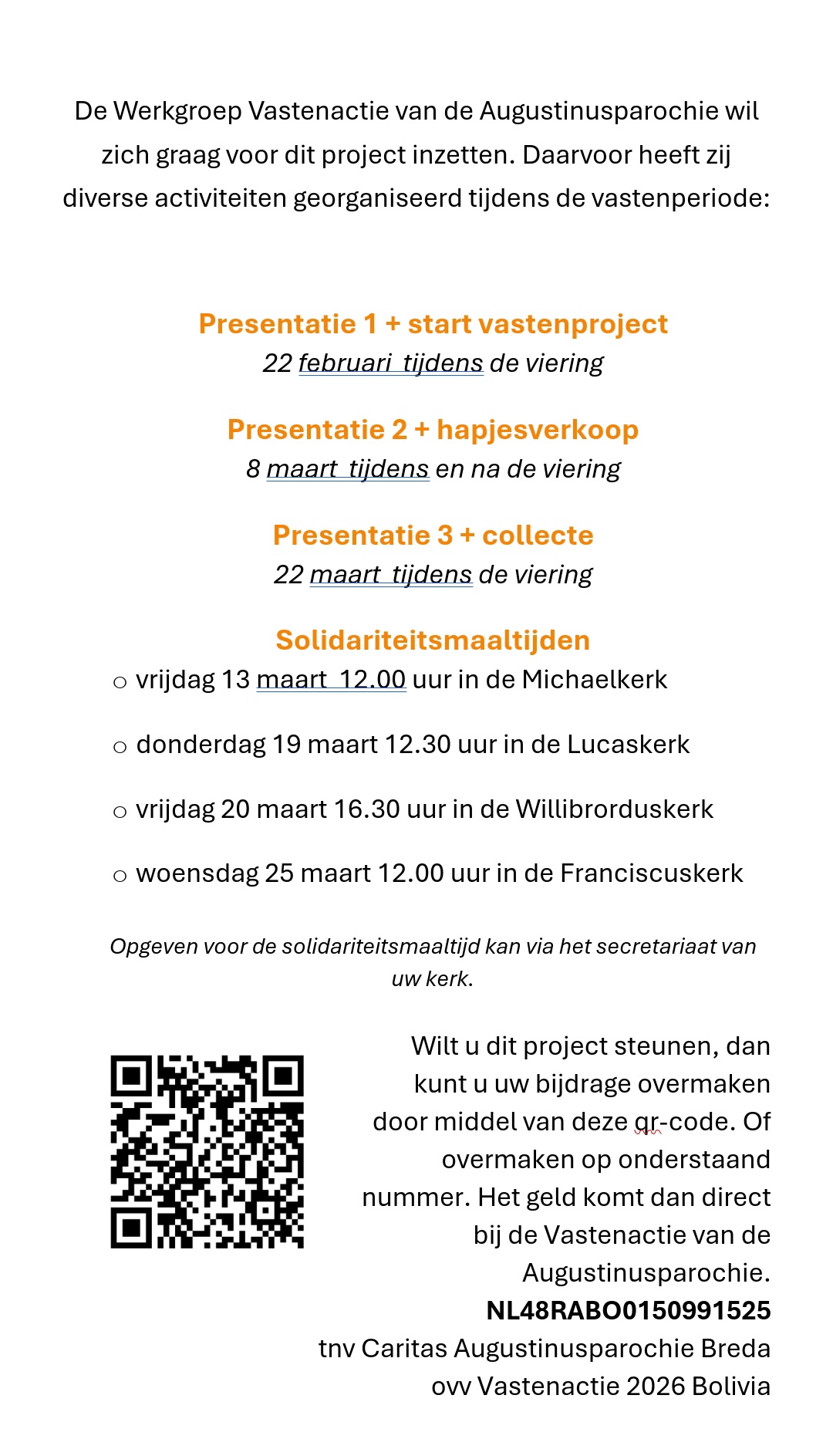Graag reactie naar michael@augustinusparochiebreda.nl of 076 5219087 (ma,wo,vr tussen 10-12 uur)