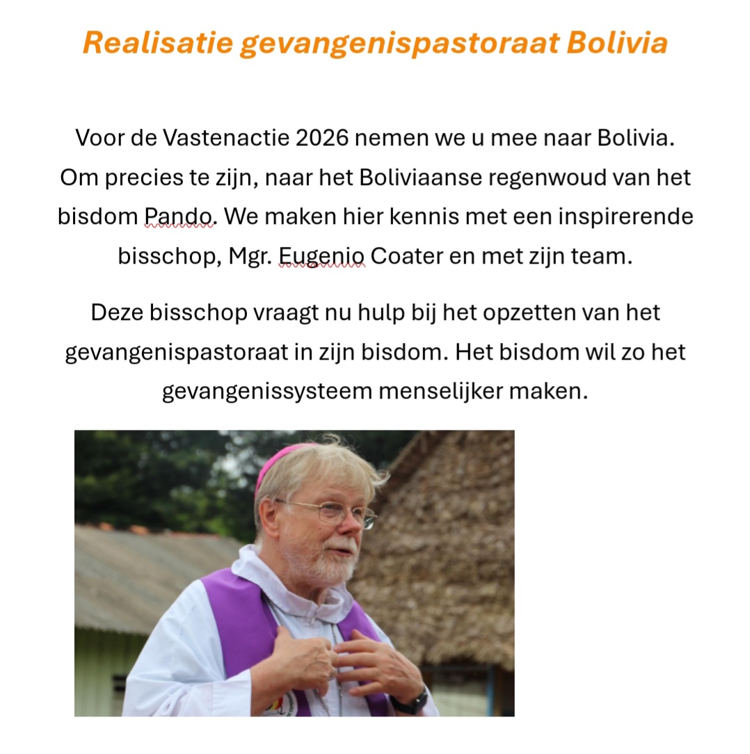 En als u niets kunt verzinnen, dan is er nog altijd de Vastenactie, dit jaar voor Bolivia, om daar het gevangenispastoraat te realiseren.